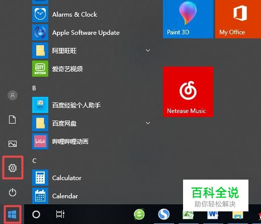首先,我们点击电脑桌面左下角的微软按钮,弹出的界面,我们点击设置;