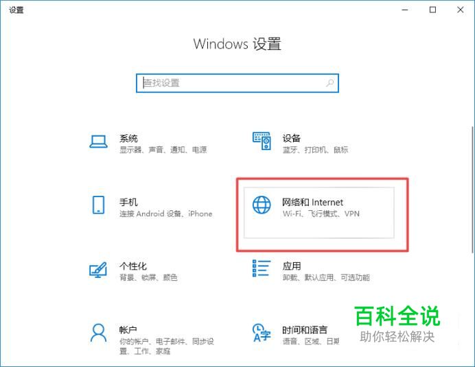 弹出的界面,我们点击网络和Internet;