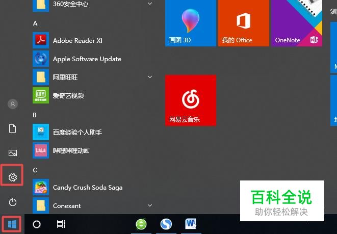 首先,我们点击电脑桌面左下角的微软按钮,弹出的界面,我们点击设置;