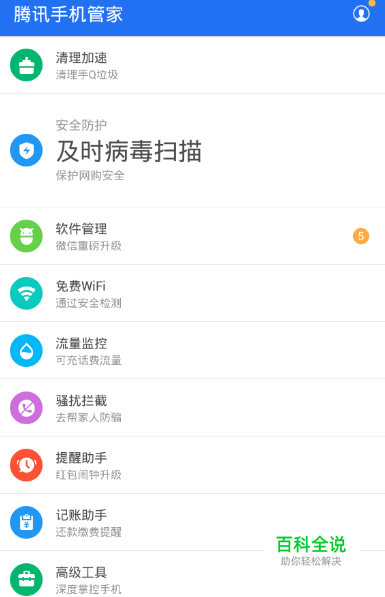 首先,在自己的手机上面,下载安装一个手机管家,然后打开这个软件