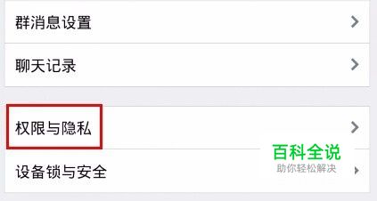 打开手机QQ设置,然后点击“权限与隐私”,如下图。