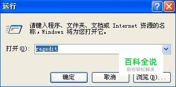 在“打开”框中键入“regedit”命令,单击“确定”按钮,打开“注册表编辑器”窗口