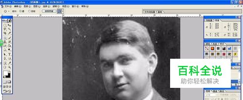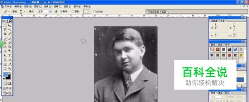 从工具箱选择修复画笔工具。按alt键选择白点附近的照片颜色,然后涂抹白点。