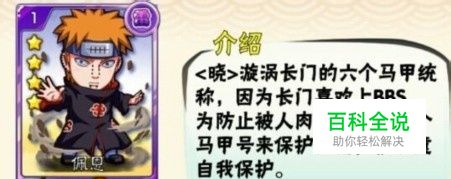 《我是火影》佩恩:四星紫色卡牌。 人物介绍:<晓>漩涡长门的六个马甲统称,因为长门喜欢上BBS,为了防止被人肉,申请了六个马甲号来保护自己,很注意自我保护。 拥有忍术: 1、万象天引:B级忍术,战斗中有20%的几率减少当前对阵忍者25%的攻防值。 2、神罗天征:B级忍术,战斗中如果当前对阵忍者已触发忍术,则有30%的几率使其忍术无效化。 组合技能: 1、佩恩外道:与<漩涡长门>同时上阵提高防御力40%。 2、晓:与<角都><飞段>同时上阵提高防御力40%。 3、我杀了你:与<自来也>同时上阵提高防御力35%。 4、重要的存在:与<小南>同时上阵提高防御力35%。