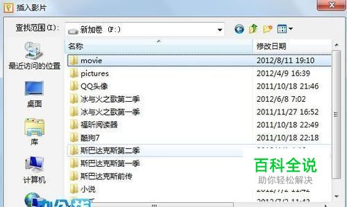 弹出对话框,找到要插入影片的位置,点击打开,将影音文件插入到演示中。
