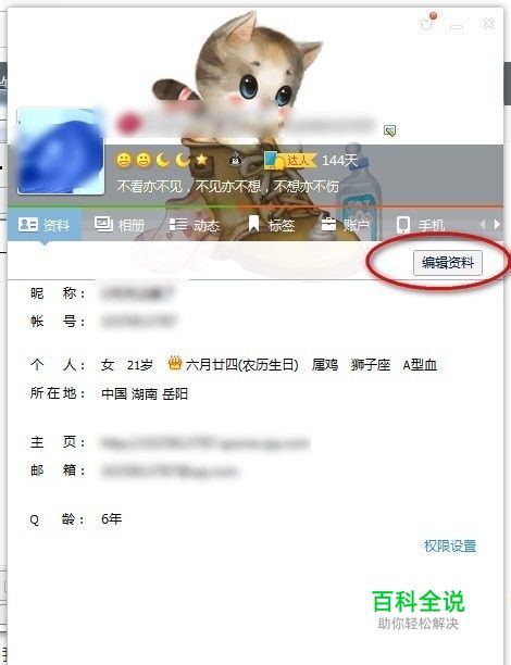 2、进入你个人资料,然后我们点击编辑资料