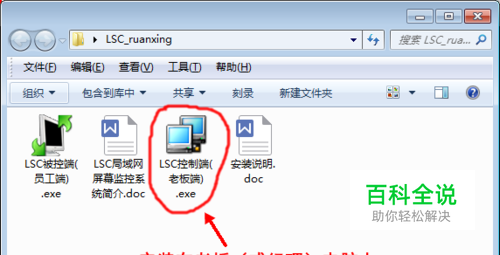 在网上搜索并下载“LSC局域网屏幕监控系统”,下载后通过Winrar等解压缩软件对其进行解压。我们会看到安装包中包括如下图所示的文件,我们首先将“LSC控制端(老板端).exe安装在管理人员电脑上(如自己电脑上)。