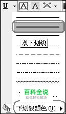 选中“下划线”及前后各一个(多个也可以)字符(即“离下划线的”),按“格式”工具栏上“下划线”按钮右侧的下拉箭头,在随后弹出的快捷菜单中,选定一种下划线类型(如“双下划线”等),并通过“下划线颜色”菜单,设置好下划线的颜色。