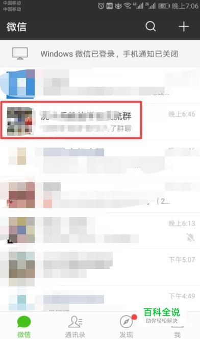 首先,我们打开我们手机上的微信,进入微信后,我们点击一个群聊;
