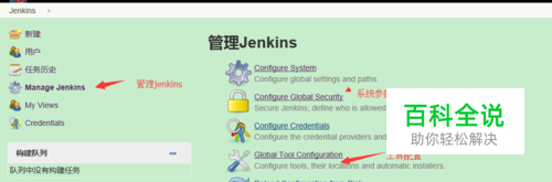 然后Jenkins首页,点击Manage Jenkins,然后点击Global Tool Configuration工具配置,配置JDK,Maven等