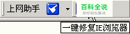 二、修复被QQ尾巴病毒破坏的系统 QQ尾巴的杀伤力,在于我们点了它提供的网址,进入某网站,该网站的恶意代码将破坏我们的电脑系统(例如篡改IE主页、禁止进入注册表、启动以后弹窗口、系统变得极慢等等)。而修复IE正是上网助手的主要功能之一。 因此,上面的操作不仅清除了QQ尾巴,还同时修复了被QQ尾巴病毒破坏的系统。所以,如果您的朋友中招了,赶紧告诉他用上网助手“一键修复”即可。 不用担心上网助手没有修复IE并留下后遗症。上网助手对于IE的修复,是纯绿色的,无论修复是否成功,都不会损坏IE,非常安全。