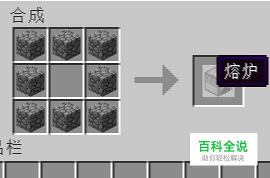 将圆石放在工作台上面,围成图示形状,即可合成熔炉,如图所示。