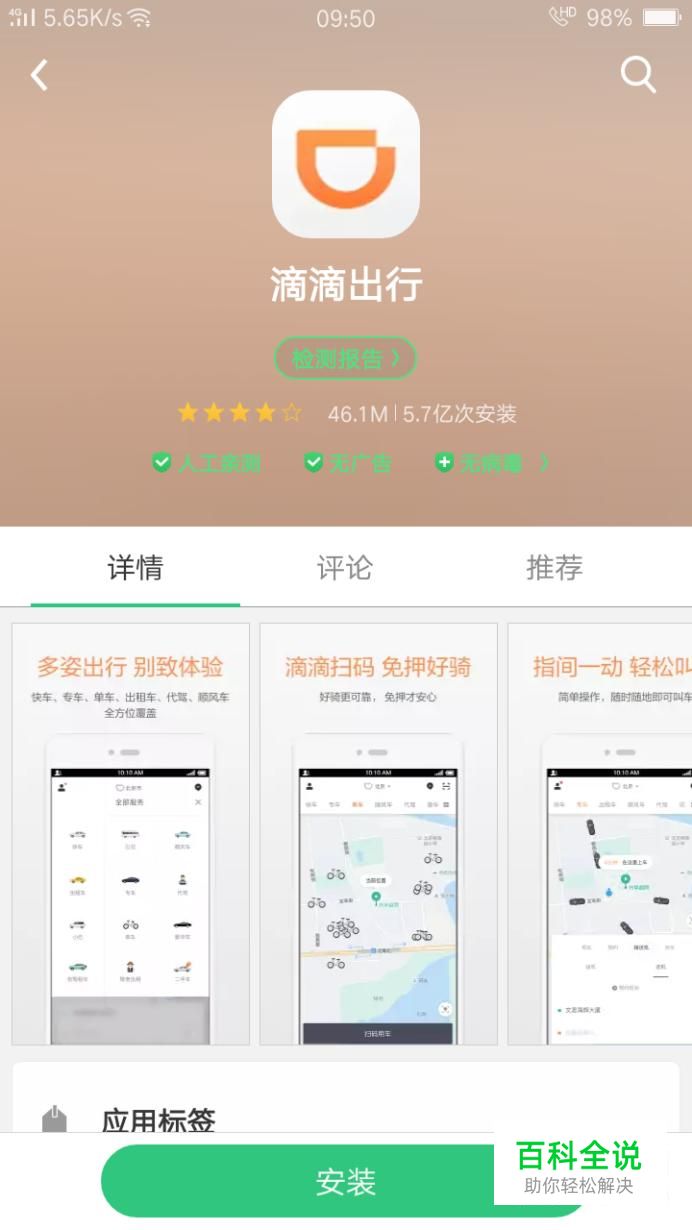 打开手机软件商店,搜索“滴滴出行”,点击安装。