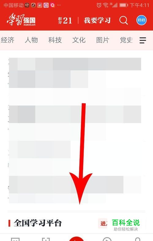 打开手机上的学习强国app首页,而后向下滑动界面