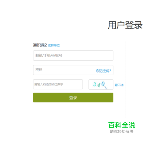 点击后进入登录页面,这是要点击通识课后面的 选择单位,在选择单位中输入自己的 学校,并在登录页面输入自己的 学号,密码(初始密码为123456),以及验证码。进行登录。