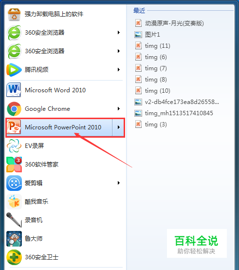 首先,在【开始】里打开PPT,如果已经做好PPT了,就直接打卡做好的即可。