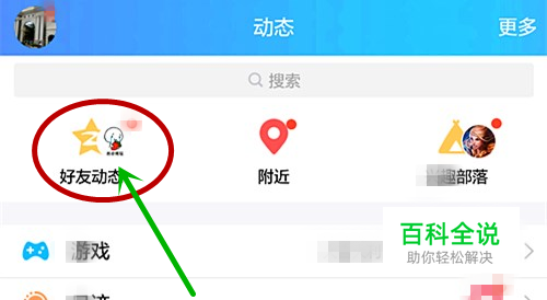 好友动态选择: 进入手机空间后,点击最上面的好友动态旁边的小三角,下拉菜单。如图。