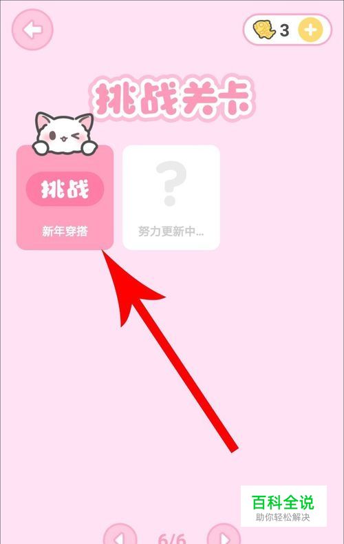 点开“挑战 新年穿搭”关卡,然后查看新年穿搭挑战说明,从中可以得到一条明确的提示信息:穿上红色的服饰。所以在接下来的穿搭中,所有的都必须是红色的。明确这一点以后点击“参与挑战”