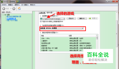 添加游戏后,在第二栏为此程序选择首选图形处理器中,选择高性能显卡处理器,然后点击应用。