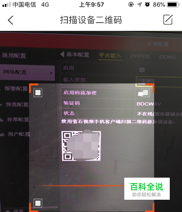 此时,相机被打开,将镜头对准硬盘录像机显示器上的码扫描。