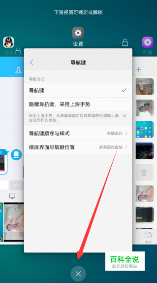 如果显示导航键,显示底部三个按键,则可以点击右下角三条横线任务栏图标。