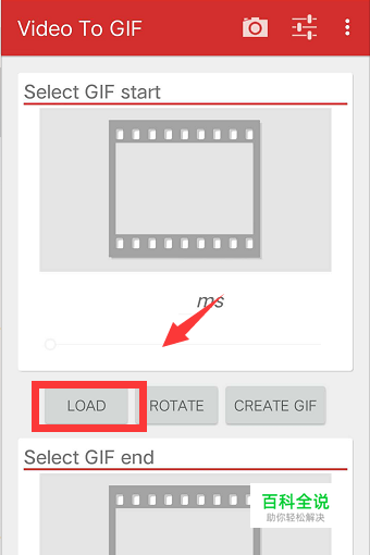 首先手机上下一个GIF制作软件,沫沫使用的是Video To GIF,打开后亣【LOAD】导入要制作动图的视频。