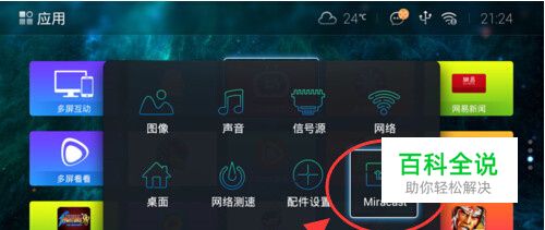 首先打开电视,用遥控器找到电视上的“应用”-“Miracast”