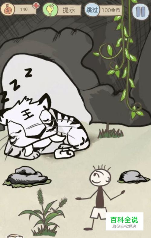 打开第一关白虎。擦掉老虎身上的王,老虎变成猫咪,点击狗尾巴草