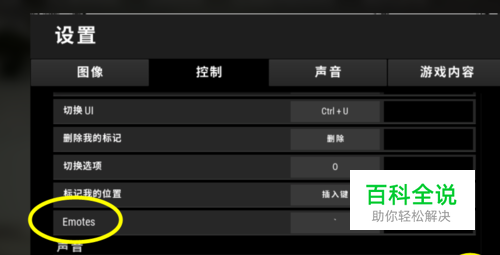 在控制设置下我们需要找到英文字母emotes,这个中文意思就是表情感官的意思。