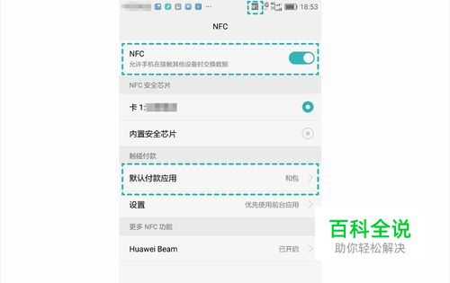 第一步——设置NFC 每当使用Huawei Pay付款时,手机将模拟成一张银行卡,这个需要通过华--为钱包绑定银行卡,来实现NFC触碰支付。 请点击【设置】>【更多】>【NFC】> 【NFC安全芯片】,选择【内置安全芯片】,将默认付款应用设置为【华--为钱包】。 当然,在你打开【华--为钱包】时,系统也会提示你打开NFC功能哦。