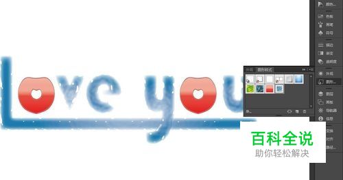 解锁L图层,选中所有字母,按住shift键去掉中间的两个心形,添加自己喜欢的图层样式