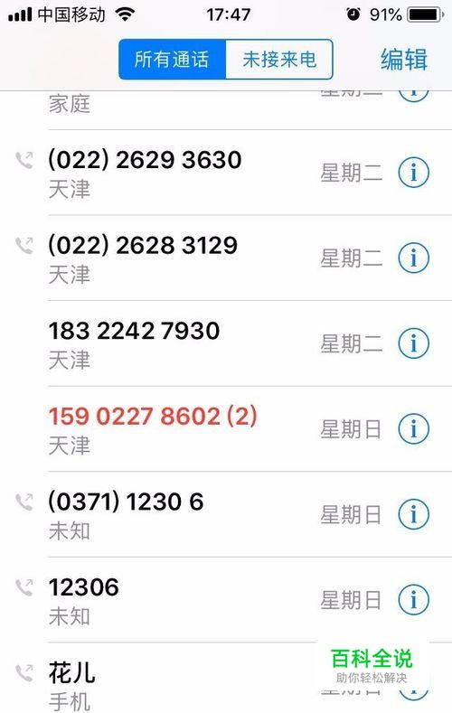 上方有“所有通话”和“未接来电”,可以点击查看。未接来电是红色数字显示,其他都是黑色数字。