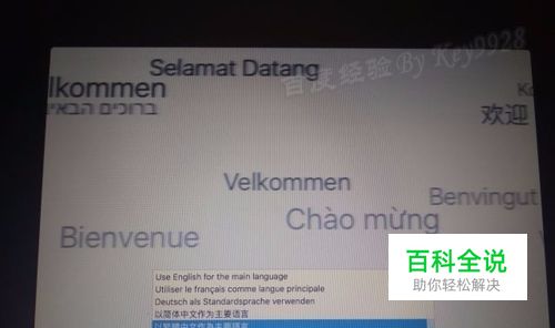 待进度条完成Mac联网恢复,并进入“MacOS X实用工具”,此时先选择语言:
