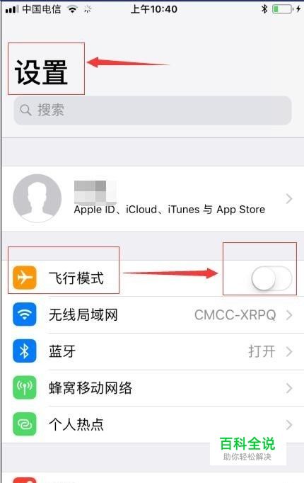 进入设置菜单,找到飞行模式,现在处于默认的关闭状态;