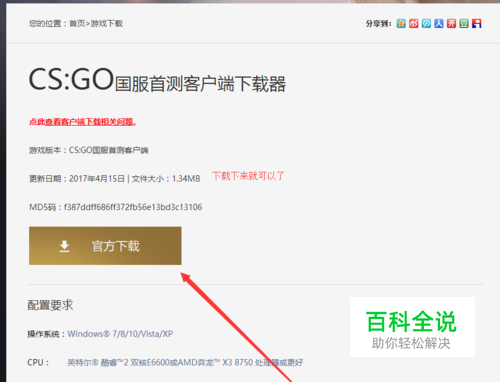1.来到csgo官方网站,如图你就会看见csgo需要有激活码才能玩这个游戏!如果没用激活码,就去抢激活码!有激活码你就可以玩这个游戏了!如图下载就可以了。