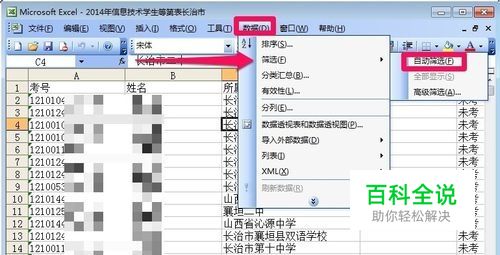 我们点击菜单中的数据-筛选,然后选择自动筛选!