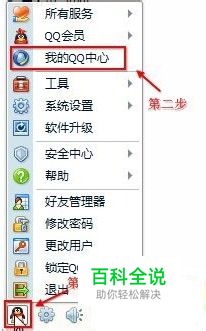 第一步,点击腾讯QQ面板左下角图标,弹出菜单。 第二步在菜单内选“我的QQ中心”,选中后会打开“QQ中心网页”。