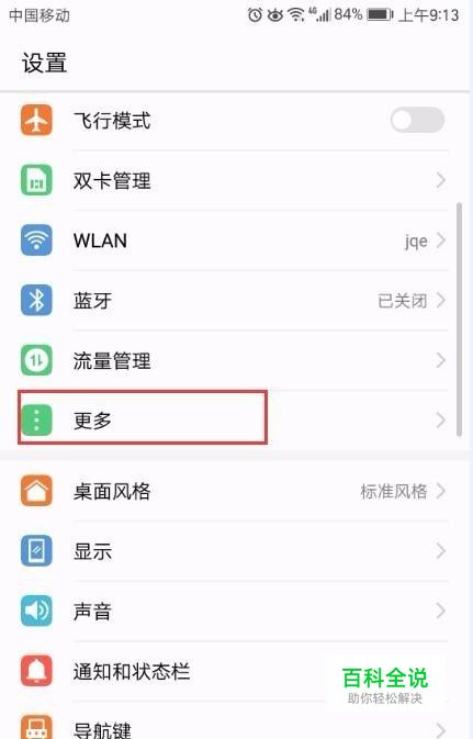 在手机设置界面查看是否有NFC选项,如果没有,则点击“更多”项。