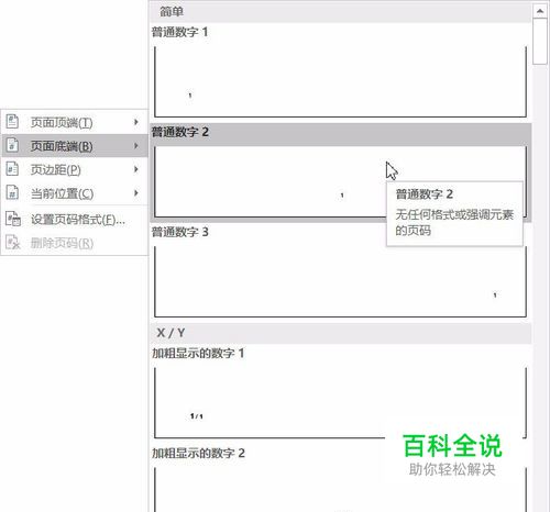 在弹出的级联菜单中选中“页面底端-普通数字2”选项。