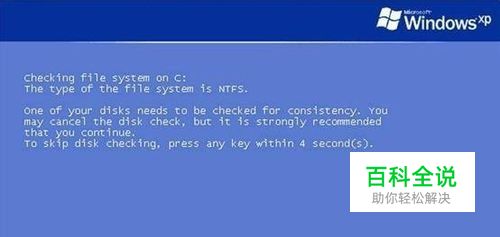 在电脑使用过程中,很多朋友发现在开机过了滚动条过后会弹出一个蓝色背景,白色字在不断跳动的界面,就如下图所示界面,在这个界面会需要等待或长或短的时间才能进系统,这是这么回事呢,这是因为电脑强制或者自动关机后,系统在对硬盘进行自检操作,那么这个过程我们是否可以取消掉呢,这样等待神烦啊,答案是肯定的,下面小编提供一下在windowsXP系统下如何取消系统开机自检功能。