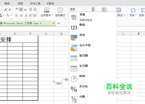 设置好单元格格式后,编辑栏中输入(80),回车,此时单元格会显示(80)。