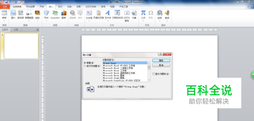 第二步:接着在“文本”组中单击“对象”按钮,打开“插入对象”对话框。