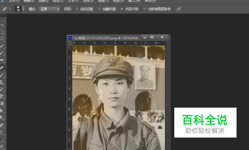 下边我们修复一下打开的的老照片,大家看一下效果。当然,光靠污点修复画笔工具是无法将图片修复到很好的效果的。还要配合许多其他工具一同使用,以后我们再来说。