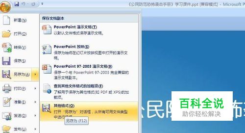 首先用WPS或者office软件打开你的ppt,将它转变为图片格式。(也许很多朋友会说office2010就可以录制ppt,但是个人感觉录制效果不佳,视频质量较差。)点击“另存为”,选择图片格式,然后“保存”,确定每张幻灯片都转为图片格式。