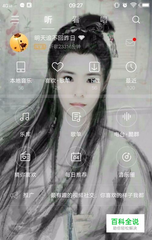 以前酷狗打开后就能看到听歌识曲的标志,现在升级后要用这一功能,就要找找了。现在来看看到底它是躲在哪里了?