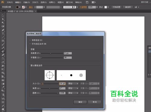 先画树枝: 设置填充颜色:黑,无描边。 双击【斑点画笔工具】 弹出【斑点画笔工具选项】: 保真度:9pt 画笔大小:14pt,固定 角度:0度 圆度:100% 确定