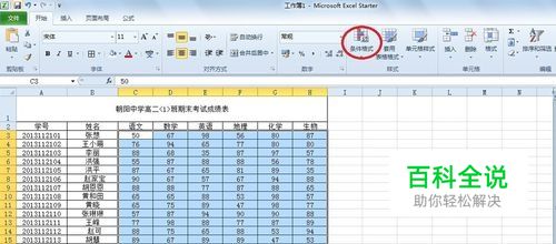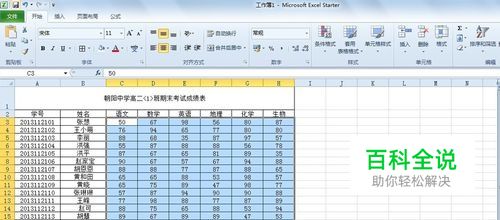 这里以excel2010举例说明,如某班级成绩表,要求选出成绩低于60分的数据并将单元格标注颜色。首先打开你所需要的excel表格,选中数值框。