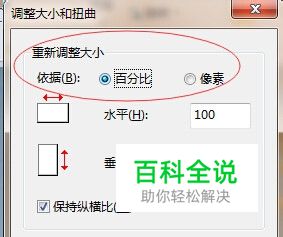 我们点击重新调整大小。会出现一个调整大小的选项框,我们可以根据百分比调节也可以根据像素的大小。
