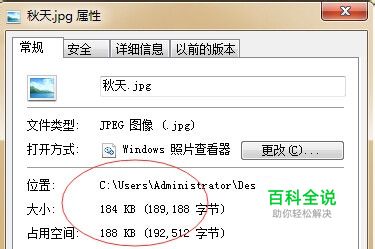 我们点击确定之后,在将图片保存一下。一般我们需要将图片重新保存一个副本,我选择的是将图片另存为,格式和之前一致。然后我们再次查看保存好的图片的属性,可以看到图片大小明显变小了。