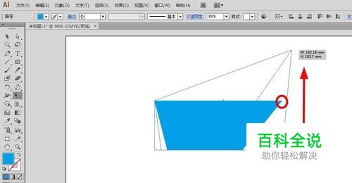 如果我们不拖动顶点,我们用鼠标单击一下图形右边的定界框的中点,不松手,接着按住ctrl键拖动图形